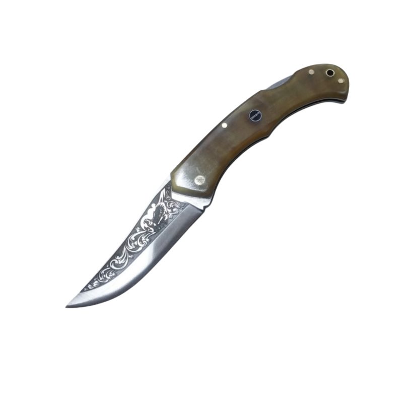 El Yapımı Kilitli Çakı Boynuz Kabze Gravür İşleme N690 Böhler No 2 Hançer Model